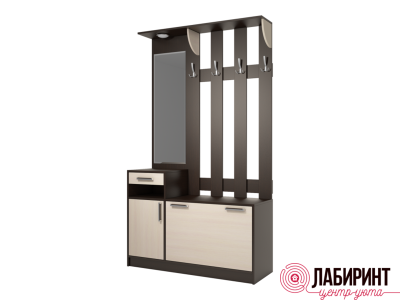 Вешалка «Диана-1» секция 14. Эта деревянная напольная вешалка с зеркалом станет стильным и функциональным решением для вашей прихожей. Идеально подходит для размещения одежды, аксессуаров и других вещей, необходимых в повседневной жизни. Компактный дизайн позволяет удобно использовать изделие как в просторных коридорах, так и в небольших помещениях.