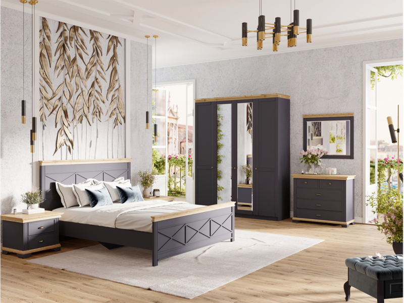 Кровать «Лиана-1» выполнена в актуальном графитовом цвете с добавлением благородного дерева. Подчеркнет Вашу индивидуальность и изысканный вкус.