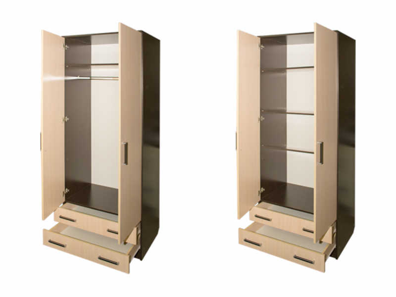 Ширина шкафа обеспечивает достаточное пространство для выдвижных ящиков и полок, позволяя организовать хранение с максимальным удобством. Внутреннее устройство включает штангу для вешалок, что упрощает доступ к верхней одежде и помогает поддерживать порядок. Возмоден вариант с полками. Дверцы шкафа открываются плавно и легко, не создавая лишних хлопот при использовании.