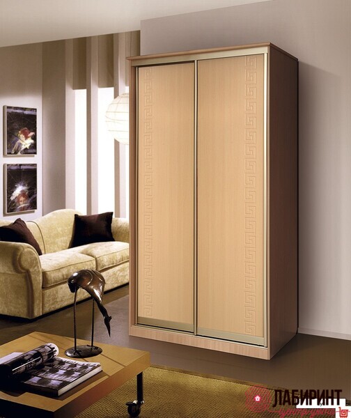 Наполнение шкафа: В правом отделении полки и 3 выдвижных ящика, в левом - штанга для одежды.