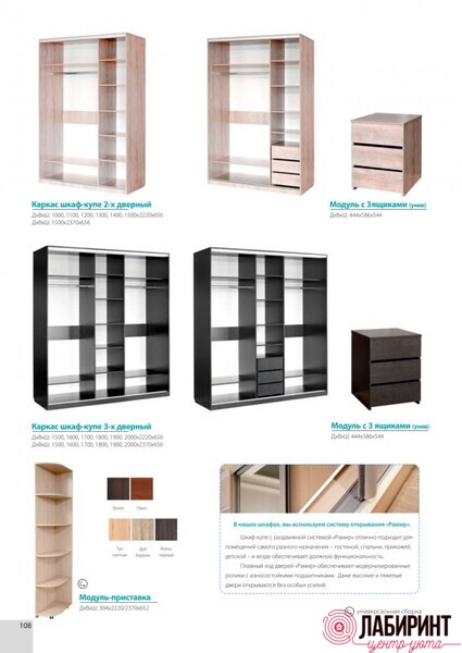 Система раздвижения дверей «Рамир»- нежнеопорная система (двери шкафа скользят по нижним направляющим).