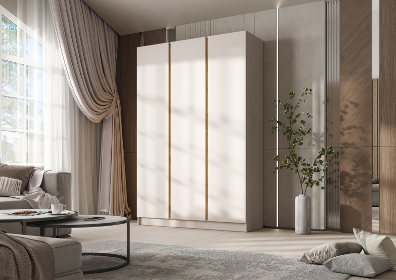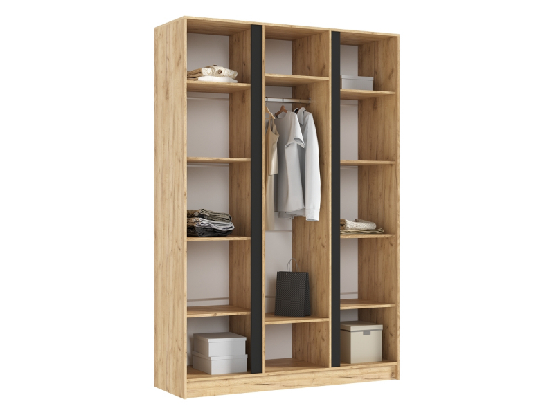 Шкаф трехдверный 1500 "Келвин". Вместительный и современный шкаф для одежды, который станет удобным решением для спальни, гардеробной или прихожей. Контрастное сочетание фасадов и планки подчеркнет стильный интерьер помещения.